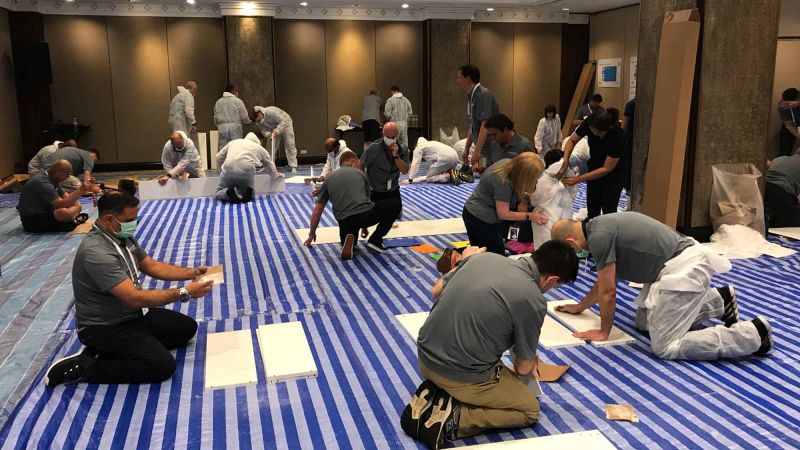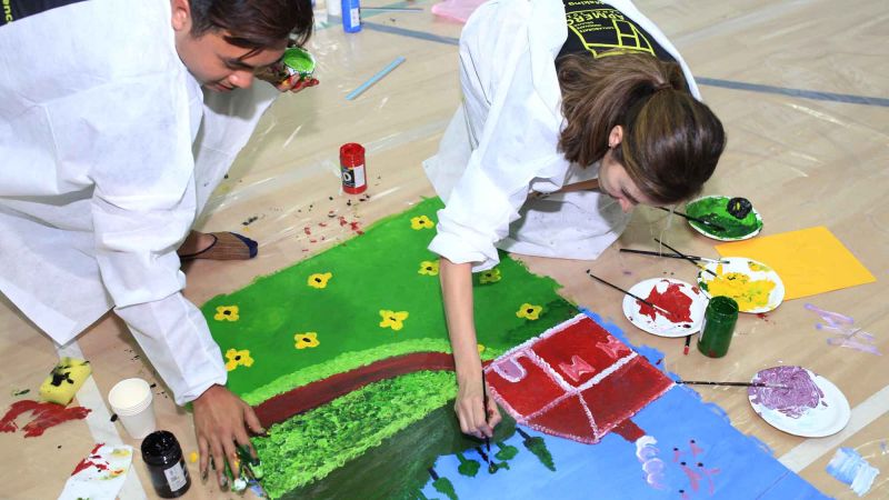 Half the team are responsible for producing the elaborately themed mural that forms the backdrop of the bookshelf. The other half turn the shelves into a work of art by attending a decoupage workshop and then applying the techniques. Once complete each team does a short presentation explaining the meaning behind their artwork before donating them to a local organisation in need.