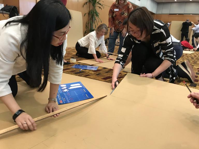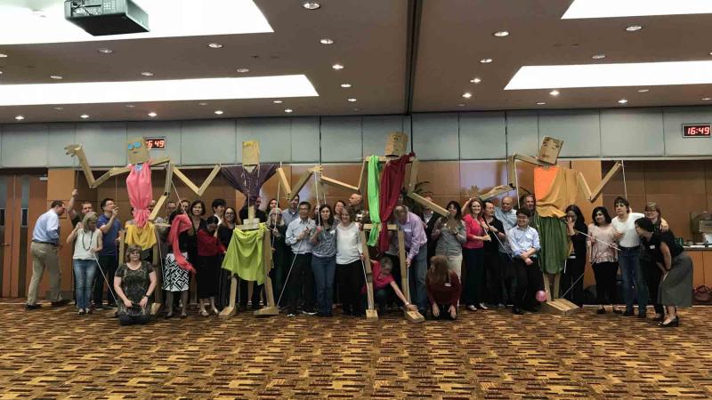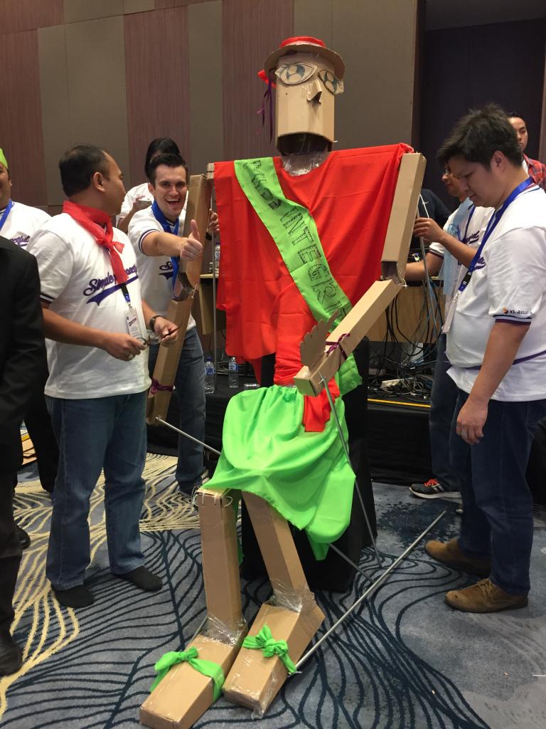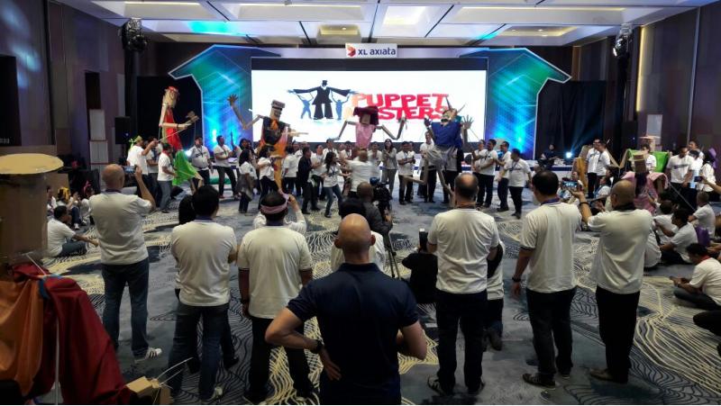 XL Axiata employees collaborate to build giant puppets with creative team building activity Puppet Masters.